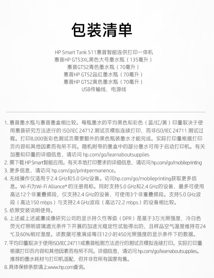 包装内容 | 机器*1;墨水*4;USB传输线*1;电源线*1;说明书/保修卡*1 |