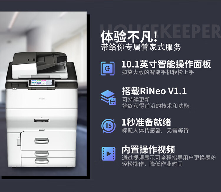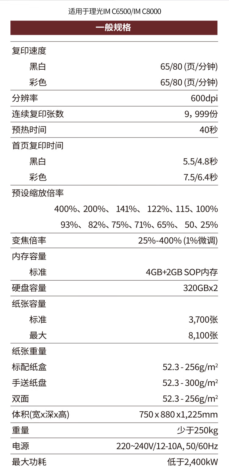 | 商品名称 | 理光(Ricoh) IM C6500 A3彩色数码多功能一体机主机+双面同步送稿器+2000页小册子 主机+双面同步送稿器 |