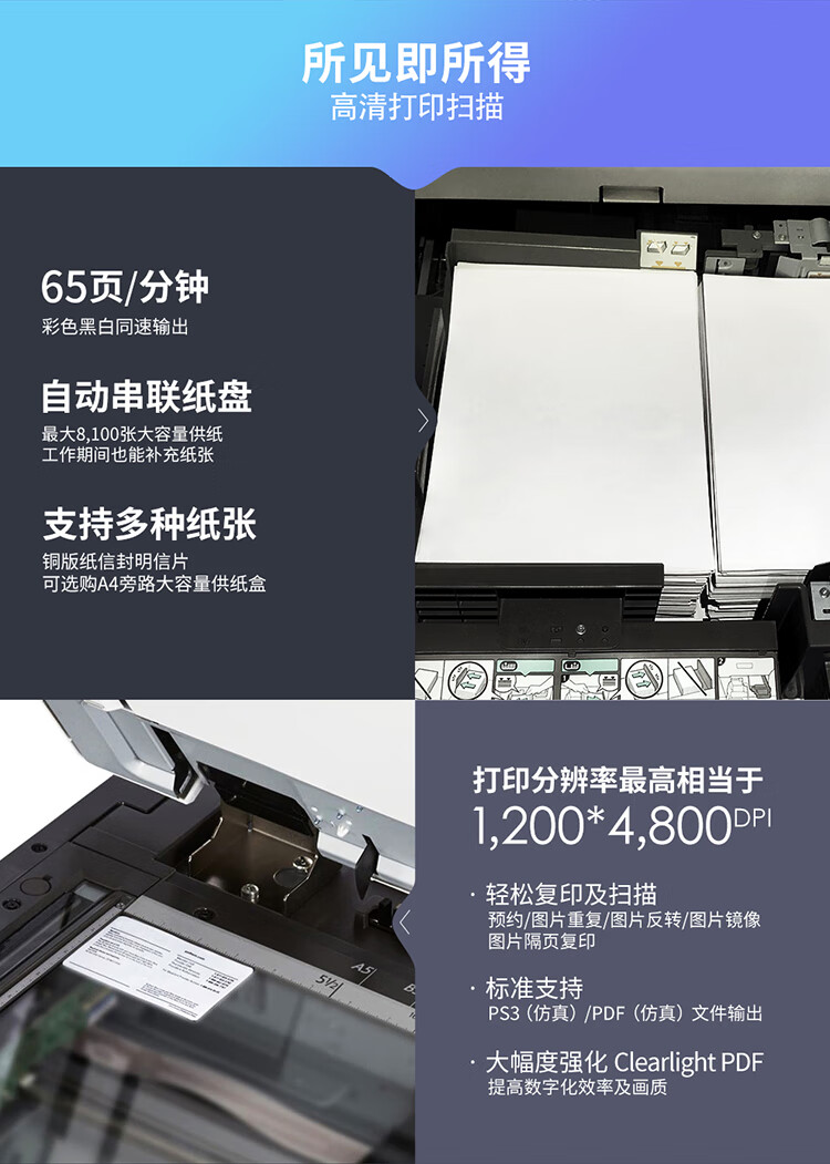 | 打印速度划分 | 超高速机(60页/分钟) |
