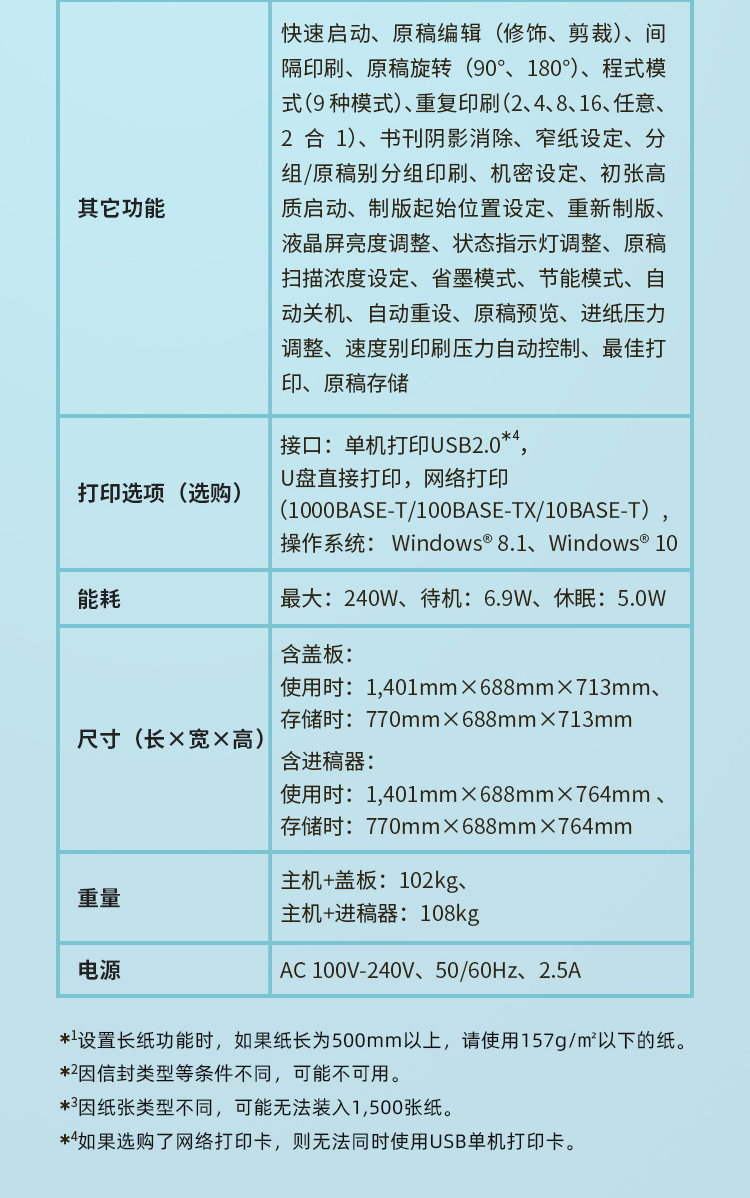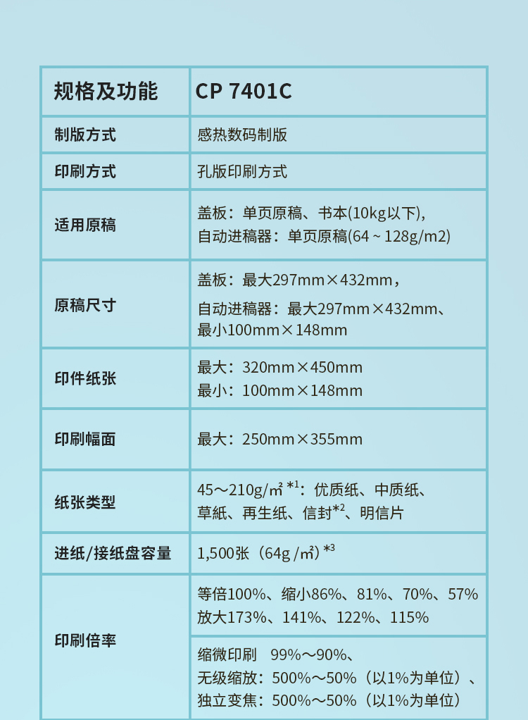 | 纸张重量 | 45-210g/m2 |