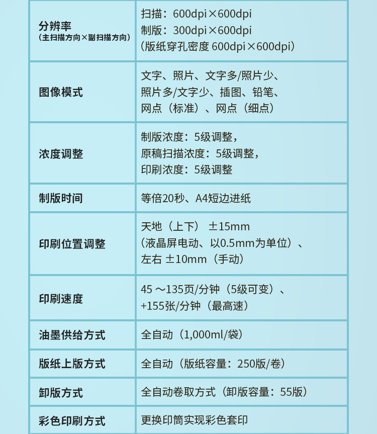 | 分辨率 | 制版:300dpi×600dpi;扫描:600dpi×600dpi |