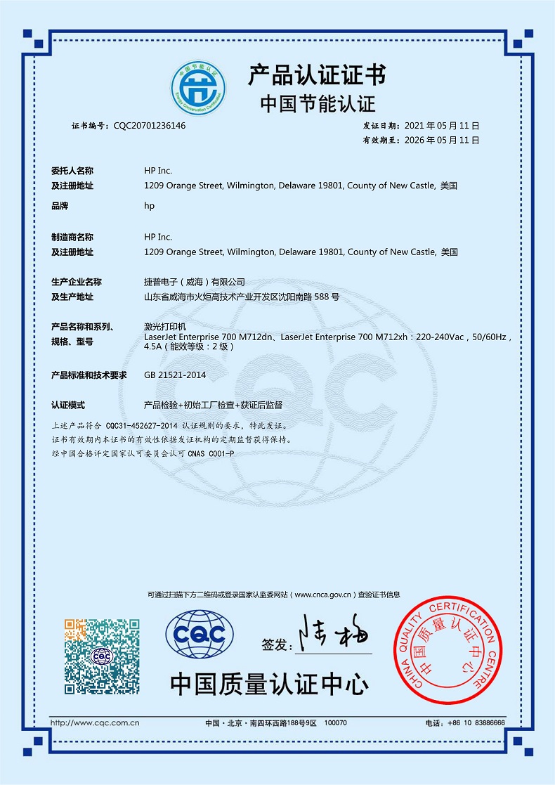 | 节能产品证书编号 | CQC18701193293 |