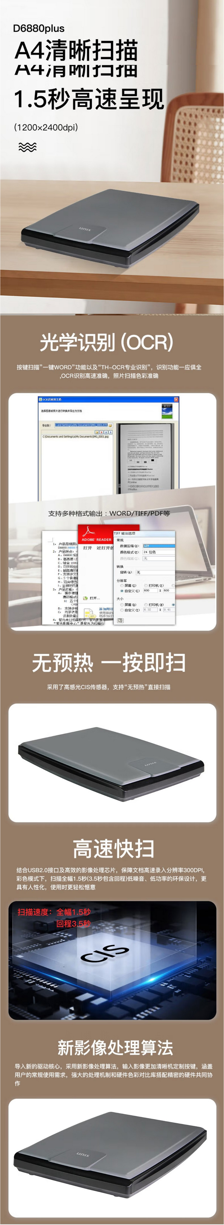 | 包装清单 | 紫光(UNIS)Uniscan D6880 Plus 扫描仪 |