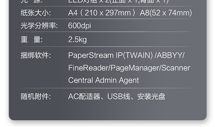 | 扫描速度 | 单面 |