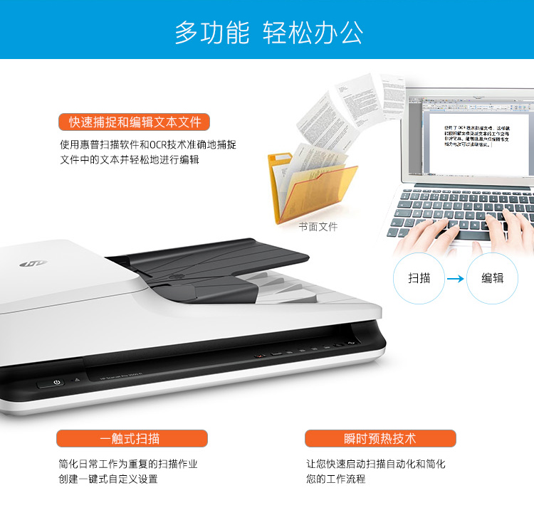 | 扫描速度 | 高达20页/分钟/40面/分钟(黑白、灰色、彩色,300 dpi) |
