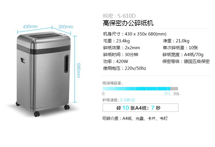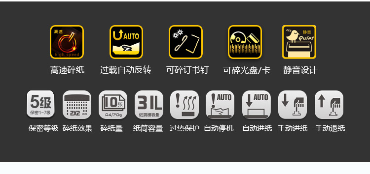 | 碎纸能力 | 10张/次(含)-19张/次(含) |