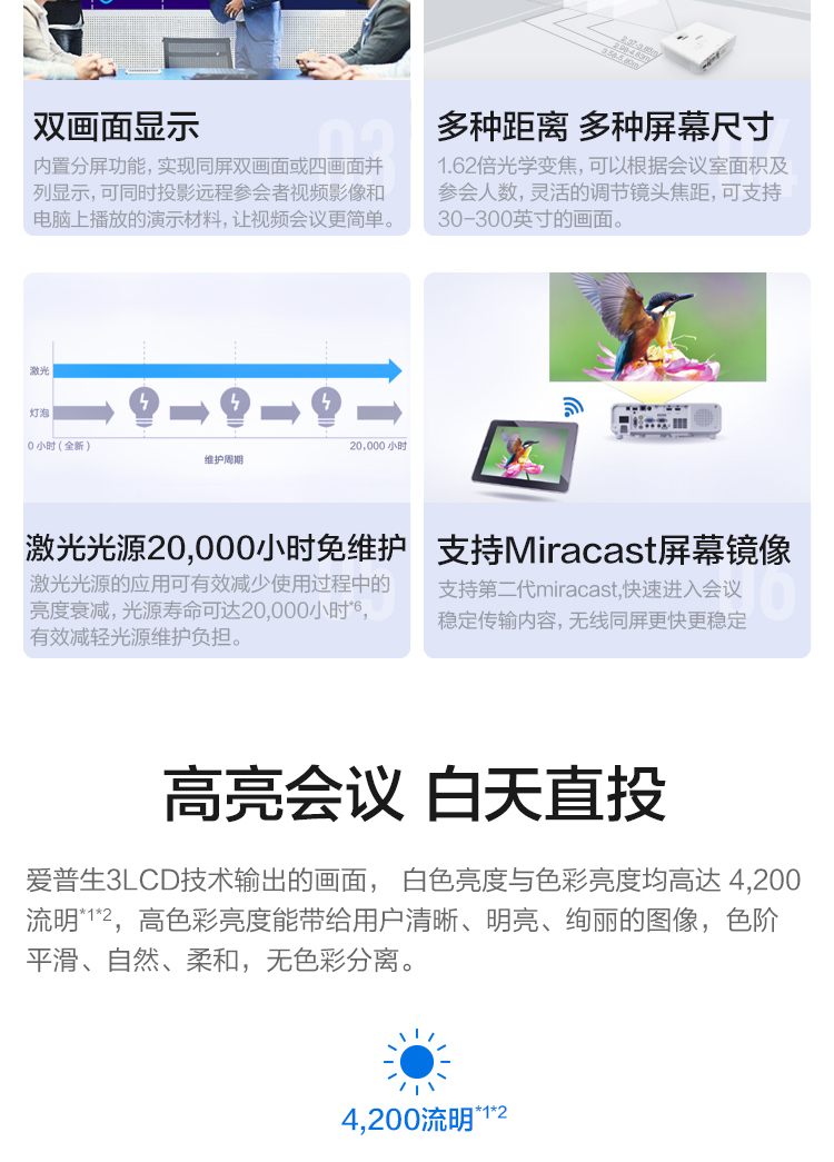 | 真实亮度 | 白色亮度:4,200 流明彩色亮度:4,200 流明 |