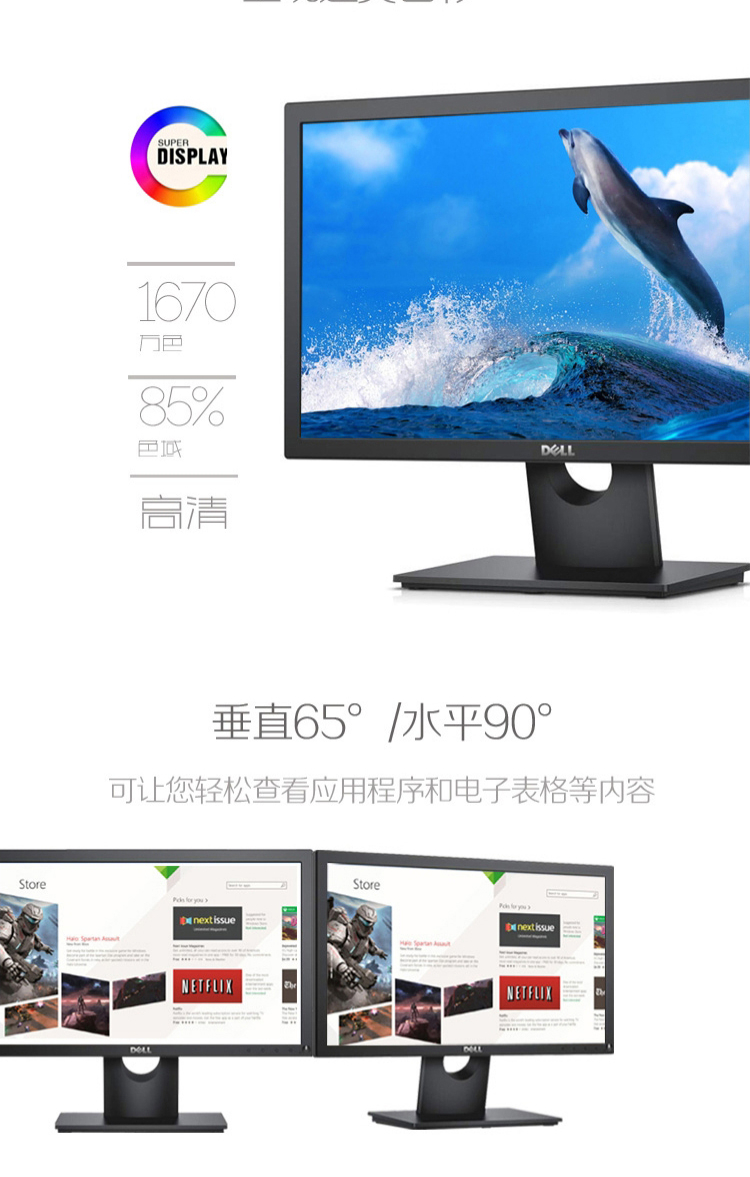 显示器× 1、支座(支架和底座)× 1、VGA 线缆× 1、电源线× 1、快速安装指南× 1、驱动程序和数字介质× 1、安全和法规信息× 1、