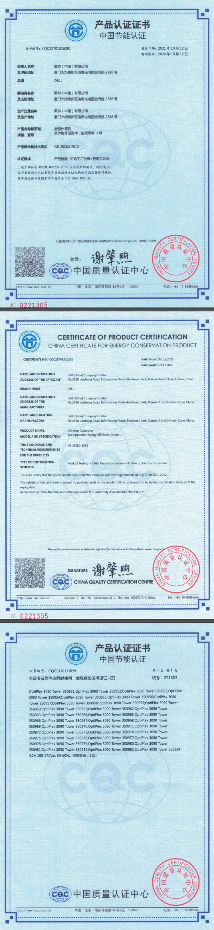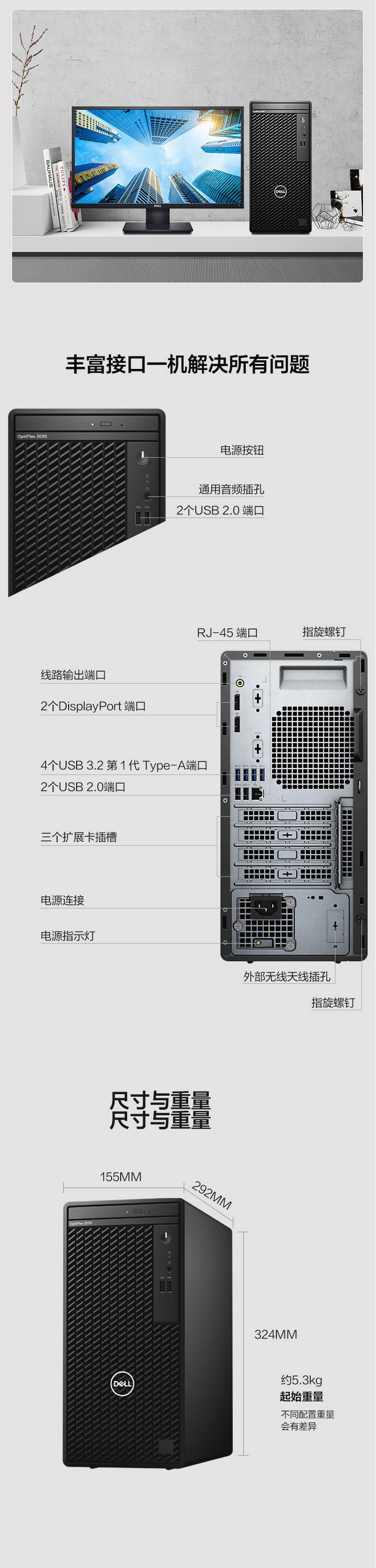 | 包装清单 | 戴尔 Optiplex 3090MT 台式电脑主机(I5-10505/2*8G/1T+256G SSD/win11H/三年保修) |