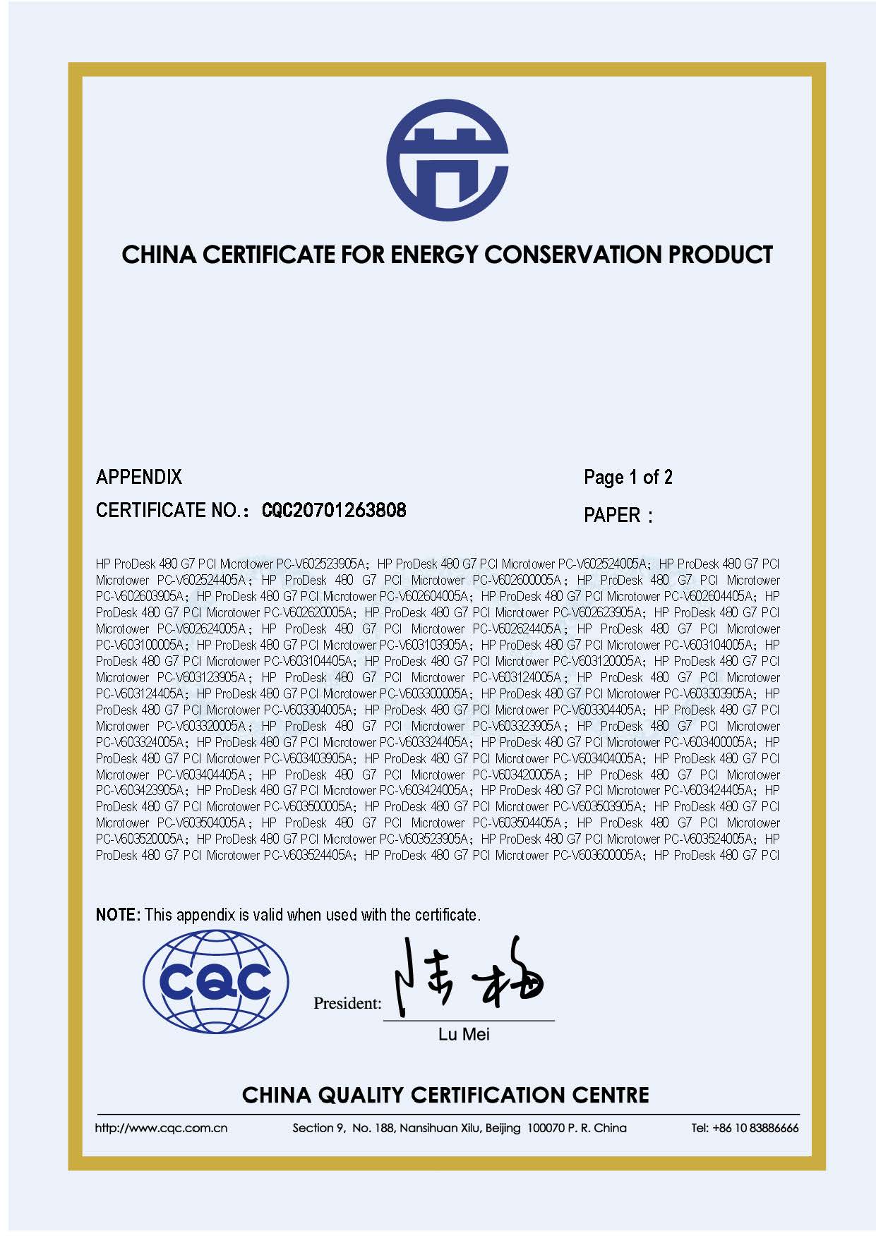 | 认证型号 | HP ProDesk 480 G7 PCI Microtower PC |