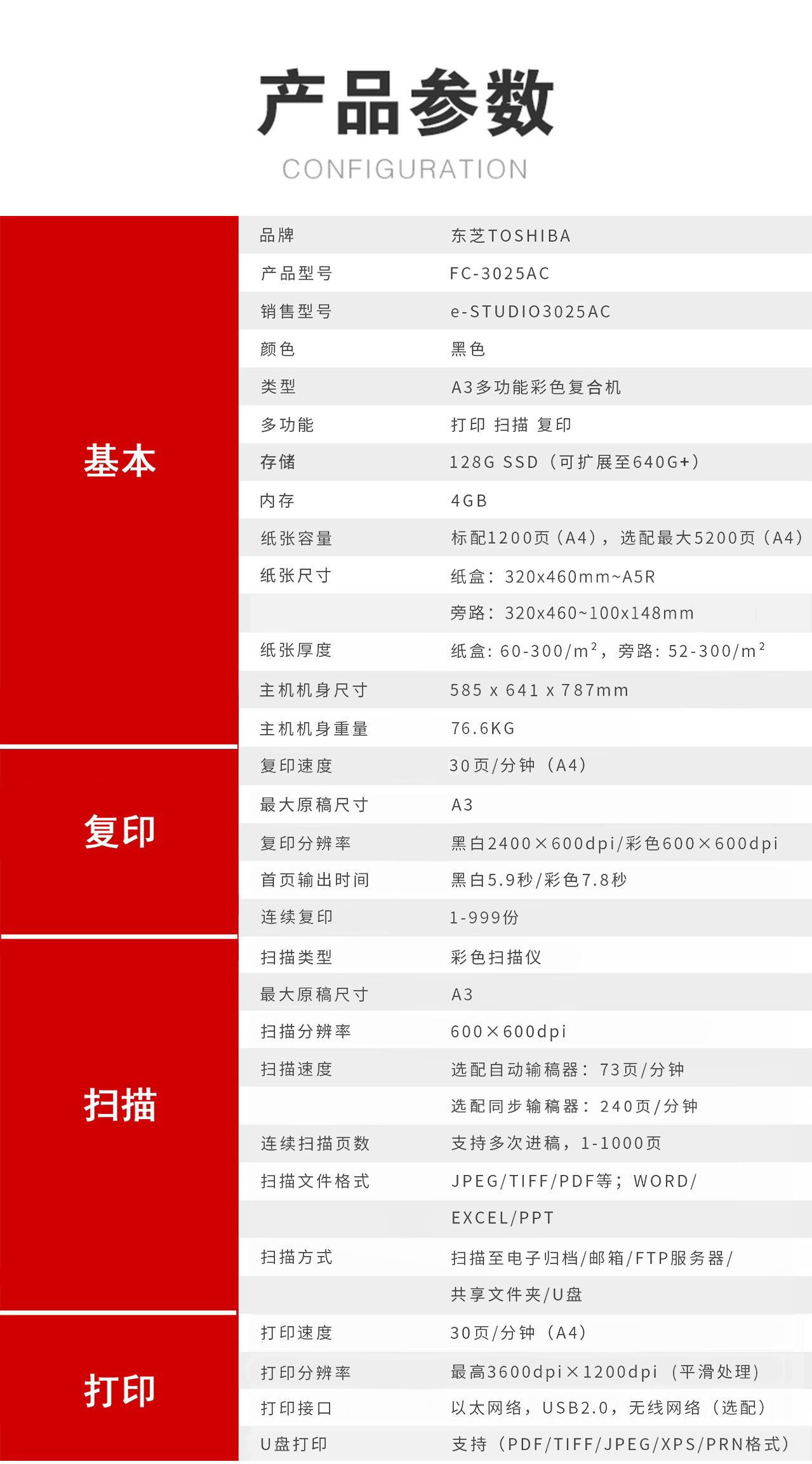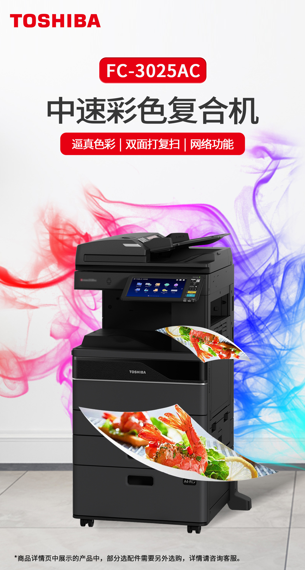 | 商品名称 | 东芝(TOSHIBA)FC-3025AC多功能彩色复合机 A3网络双面打印复印扫描 自动输稿器+双面器+双纸盒+工作台 |