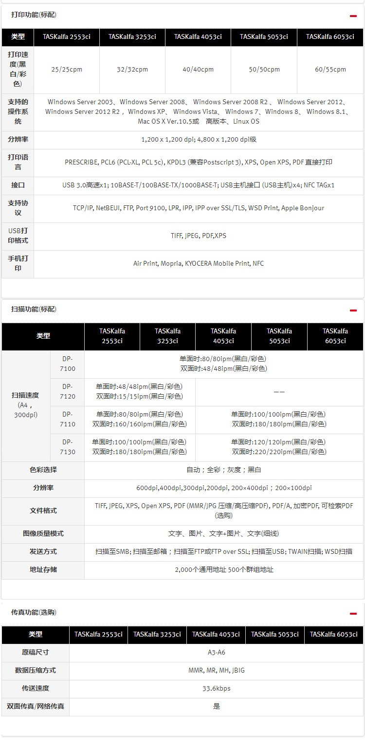 | 打印语言 | PRESCRIBE, PCL6 (PCL-XL, PCL 5c), KPDL3 (兼容Postscript 3), XPS, Open XPS, PDF 直接打印 |