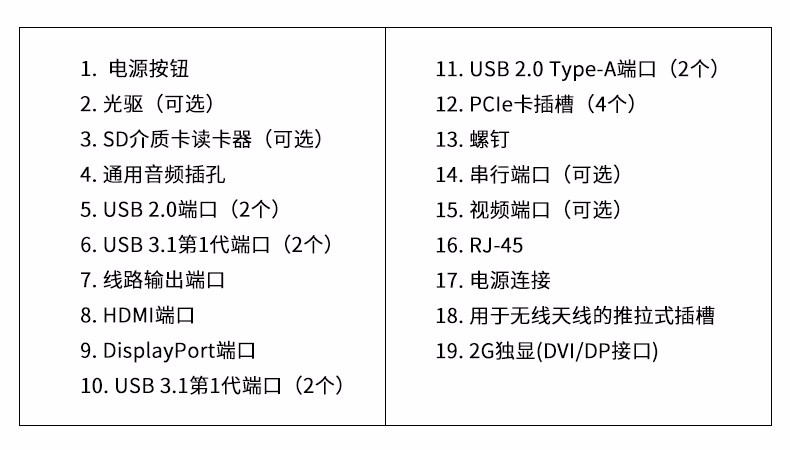 主机x1、鼠标x1、键盘x1、电源线x1、显示器x1
